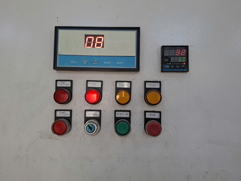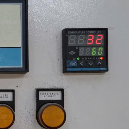 Bộ điều khiển nhiệt độ (Temperature Controller) được cấp nguồn và hiển thị nhiệt độ buồng lọc và cảnh báo nếu vượt giới hạn cho phép.