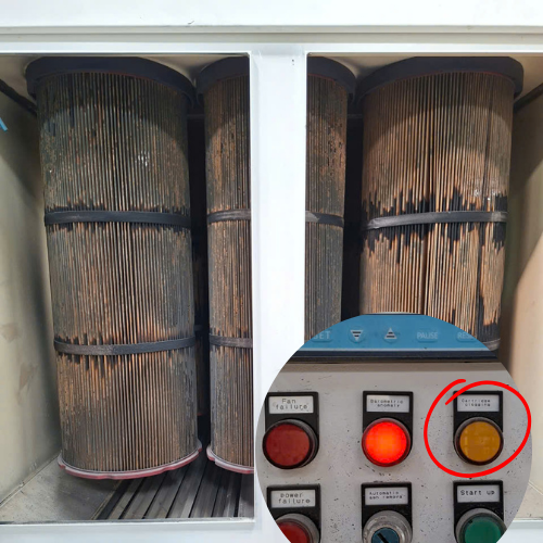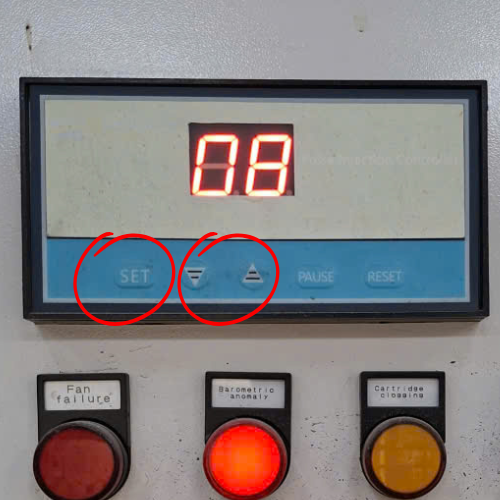 Hiển thị và điều chỉnh chu kỳ xung khí nén tự động để làm sạch lõi lọc (filter cartridge).