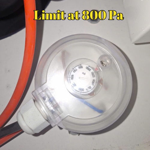 Báo lỗi áp suất – áp suất hút vượt ngưỡng cho phép (đang cài bằng công tắc áp suất >800 Pa).