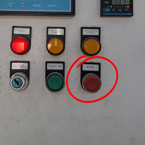 Nút dừng khẩn hoặc tắt toàn bộ hệ thống. Stop or emergency shutdown for the entire system.
