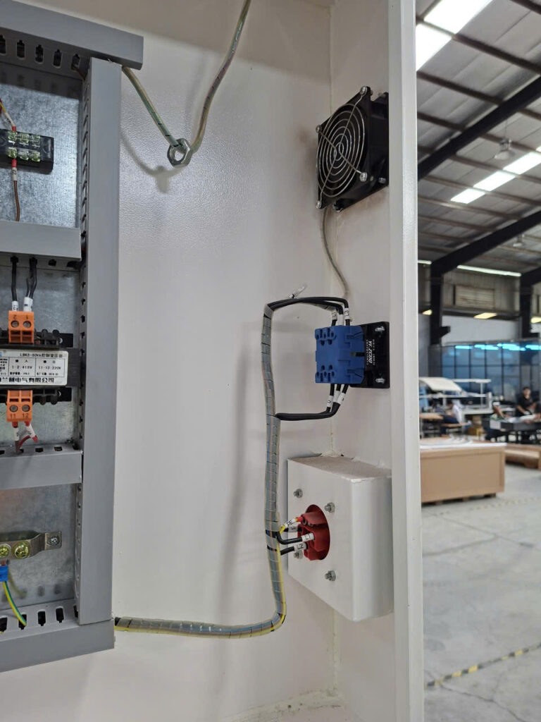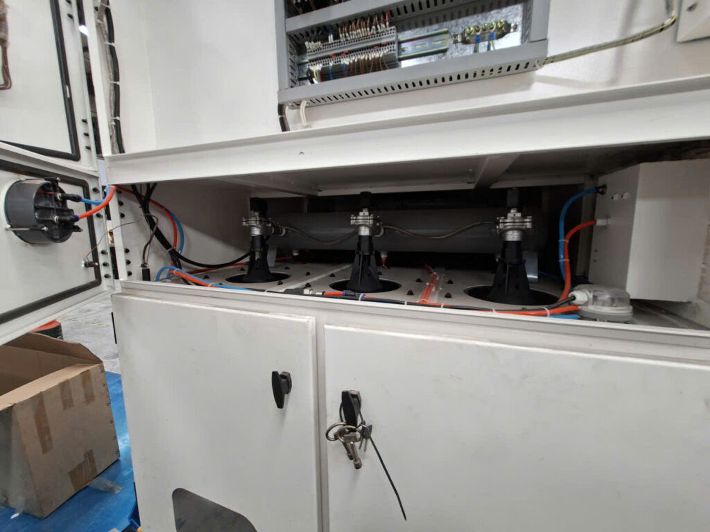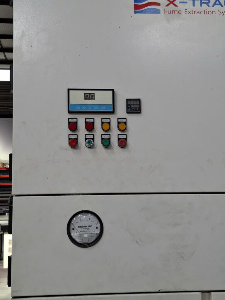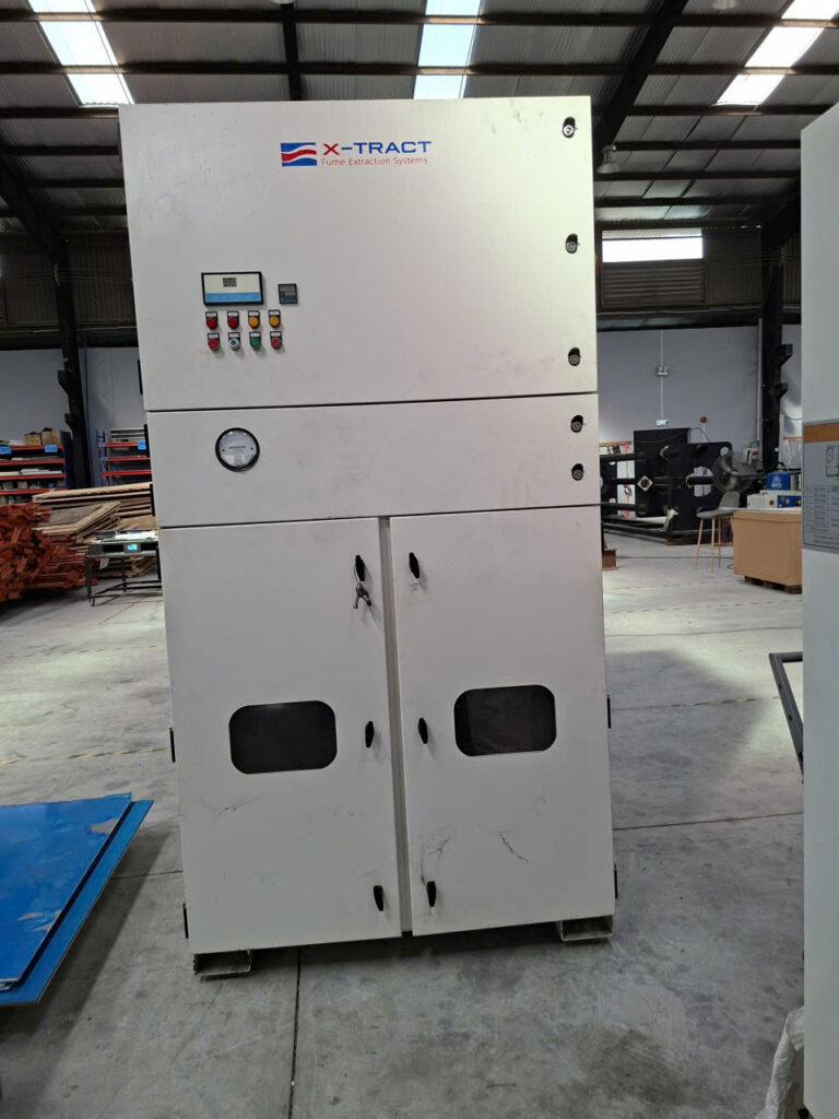Điện đã được cấp đến bộ X-TRACT MLWF3000 Fume Extraction System, 7000–10500 m³/h, 415Vac, 50Hz, 7500W.