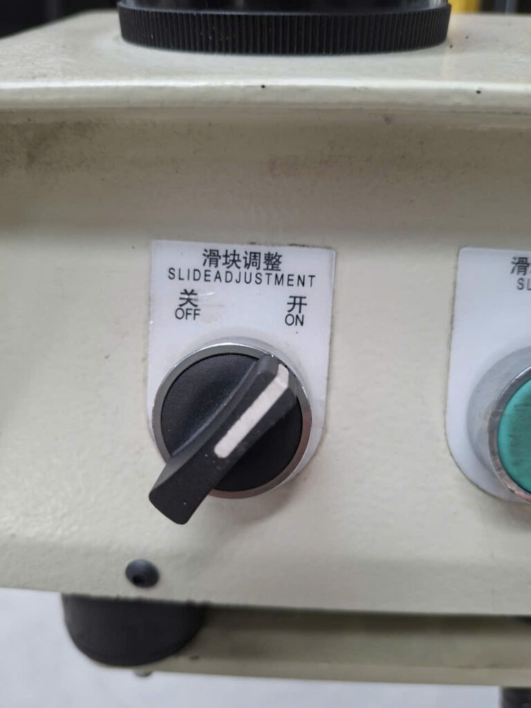 | Nhấn 2 tay (hoặc đạp chân nếu chọn Foot mode) để dập → Press both hands (or foot pedal) to punch Giữ để slider dập xuống – nhả ra để dừng → Hold to press down – release to stop |