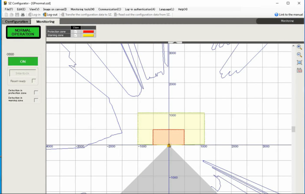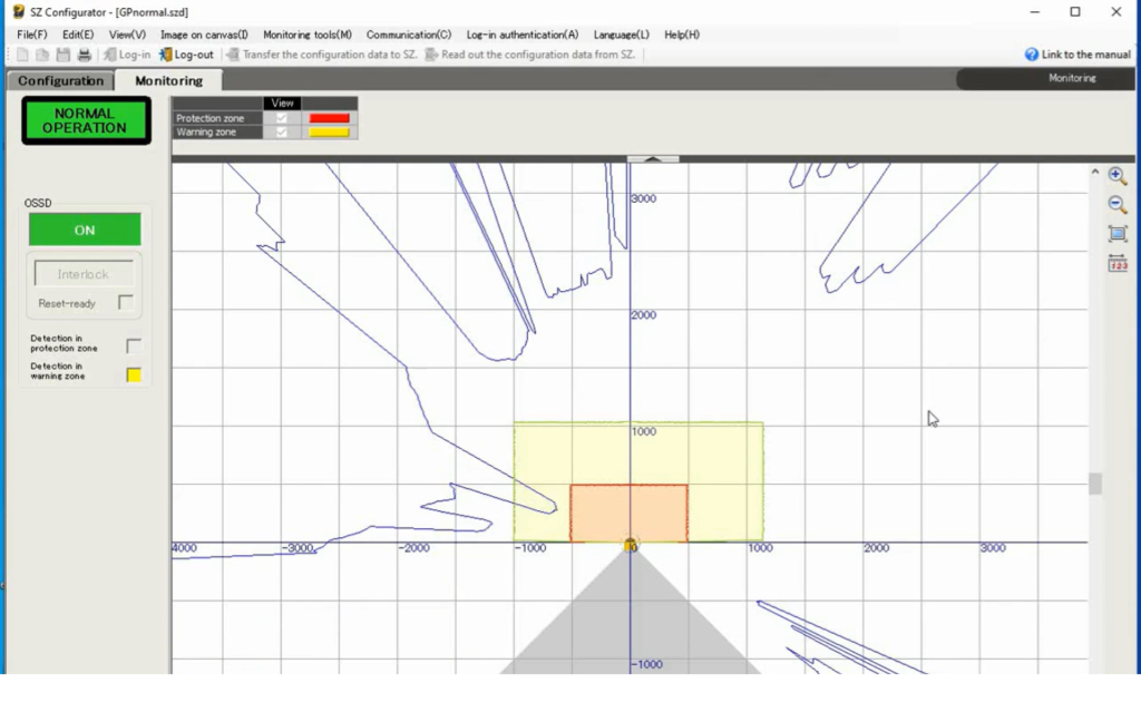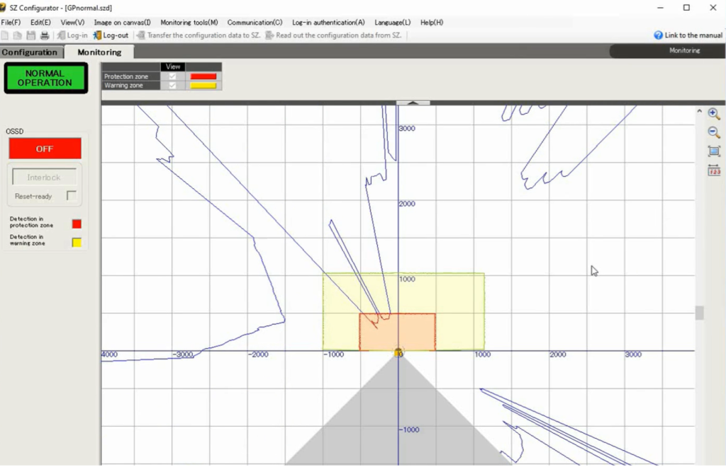- The OSSD output should activate (turn OFF), and the scanner indicator will turn Red, indicating intrusion into the Protection Zone.